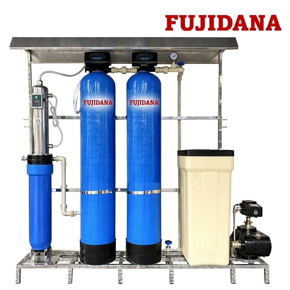 FU02-CPSR1500A-UV Lọc tổng 2 cột Composite, AutoVan, Bơm, Bể muối, UV khử khuẩn, Mái che – 1500L