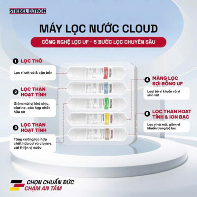 ● An toàn & chất lượng: Cloud được thử nghiệm bởi Korea Water Conformity, Hàn Quốc. Lõi lọc được bọc kín đảm bảo vệ sinh và được bảo vệ tránh nhiễm bẩn từ bên ngoài (ví dụ như nhiễm bẩn trong quá trình thay và làm sạch bộ lọc).